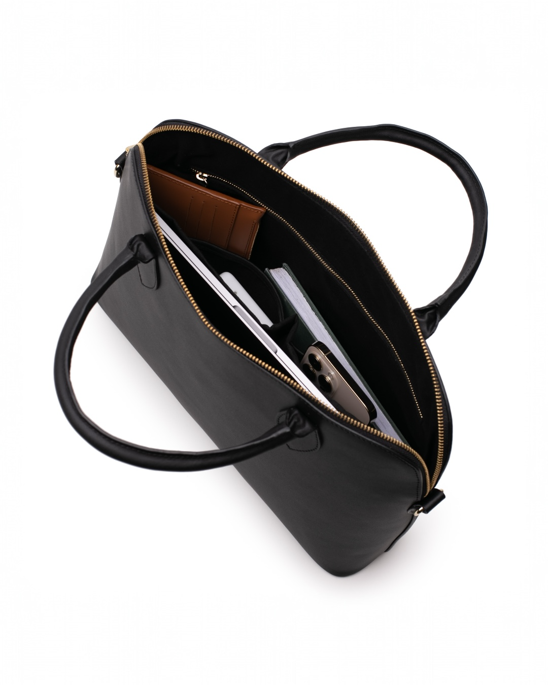 Plass til: Laptop, lader, dokumenter, notatbok, mobil, lommebok og småting