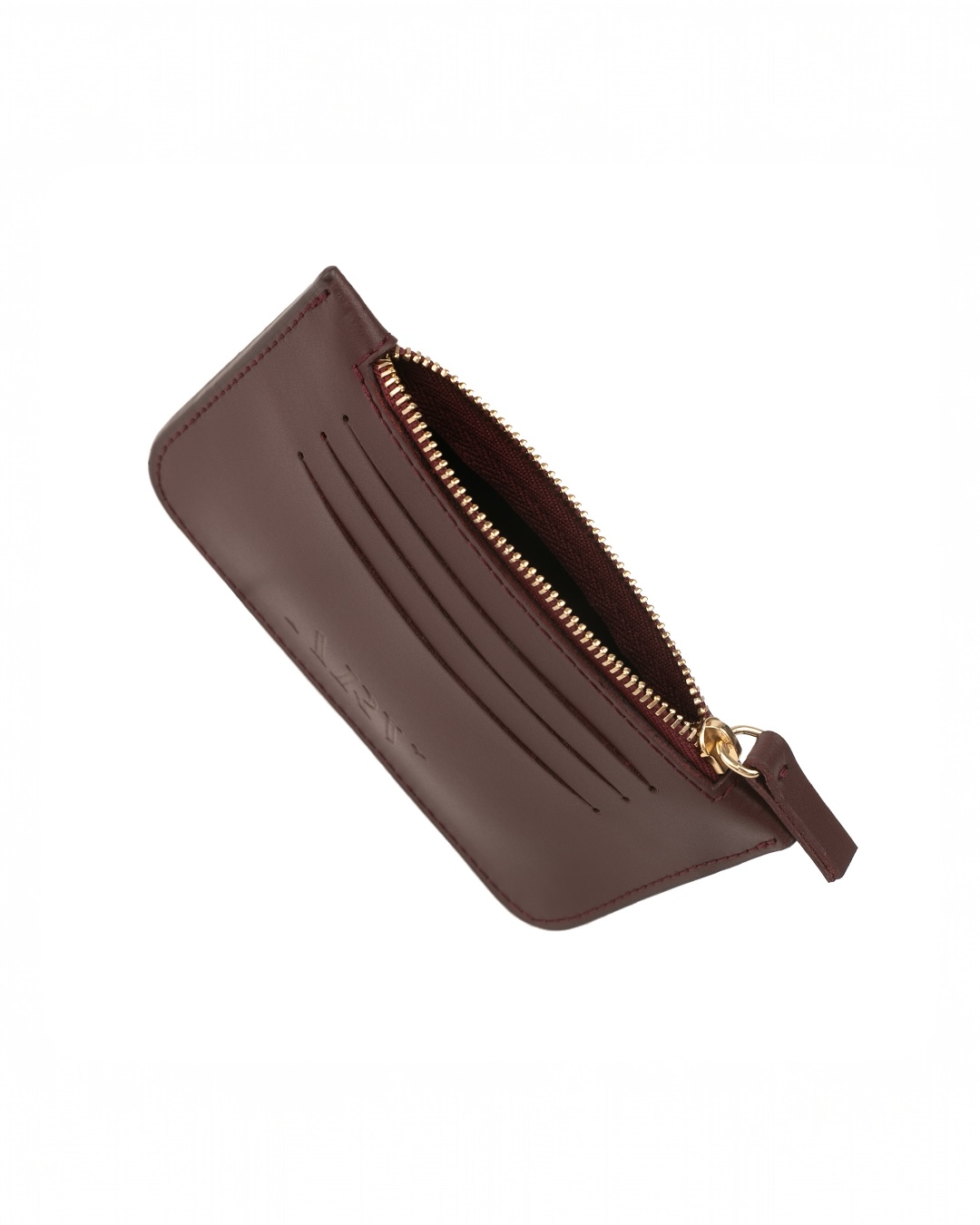 Kortholderen er laget av italiensk skinn med matt svart fôr på innsiden.